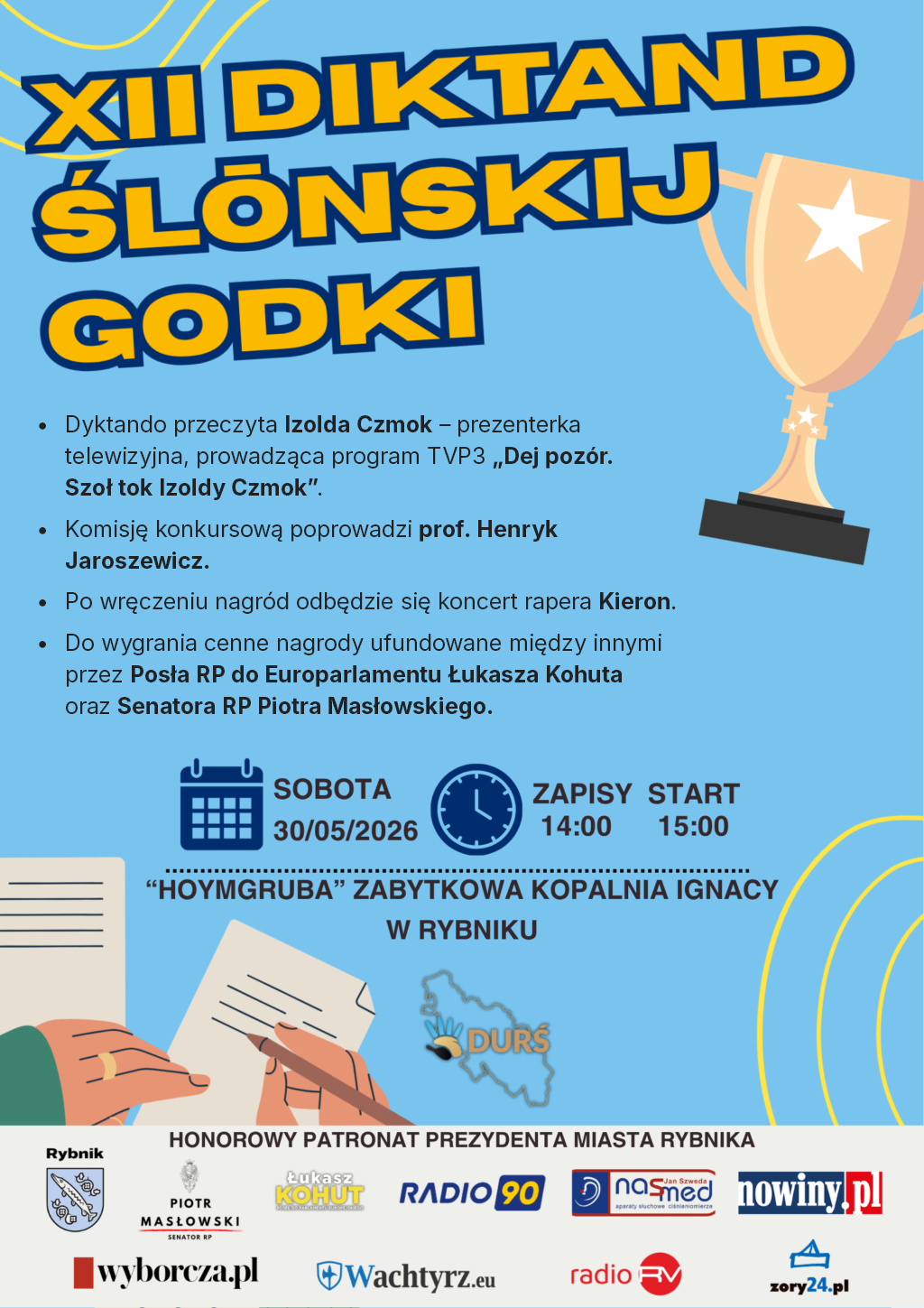 Już 30 maja zapraszamy na XII Diktand Ślōnskij Godki w Zabytkowej Kopalni Ignacy (Hoymgruba) w Rybniku! Na uczestników czeka moc nagród i atrakcji, tekst dyktanda przeczyta Izolda Czmok – prezenterka[…]