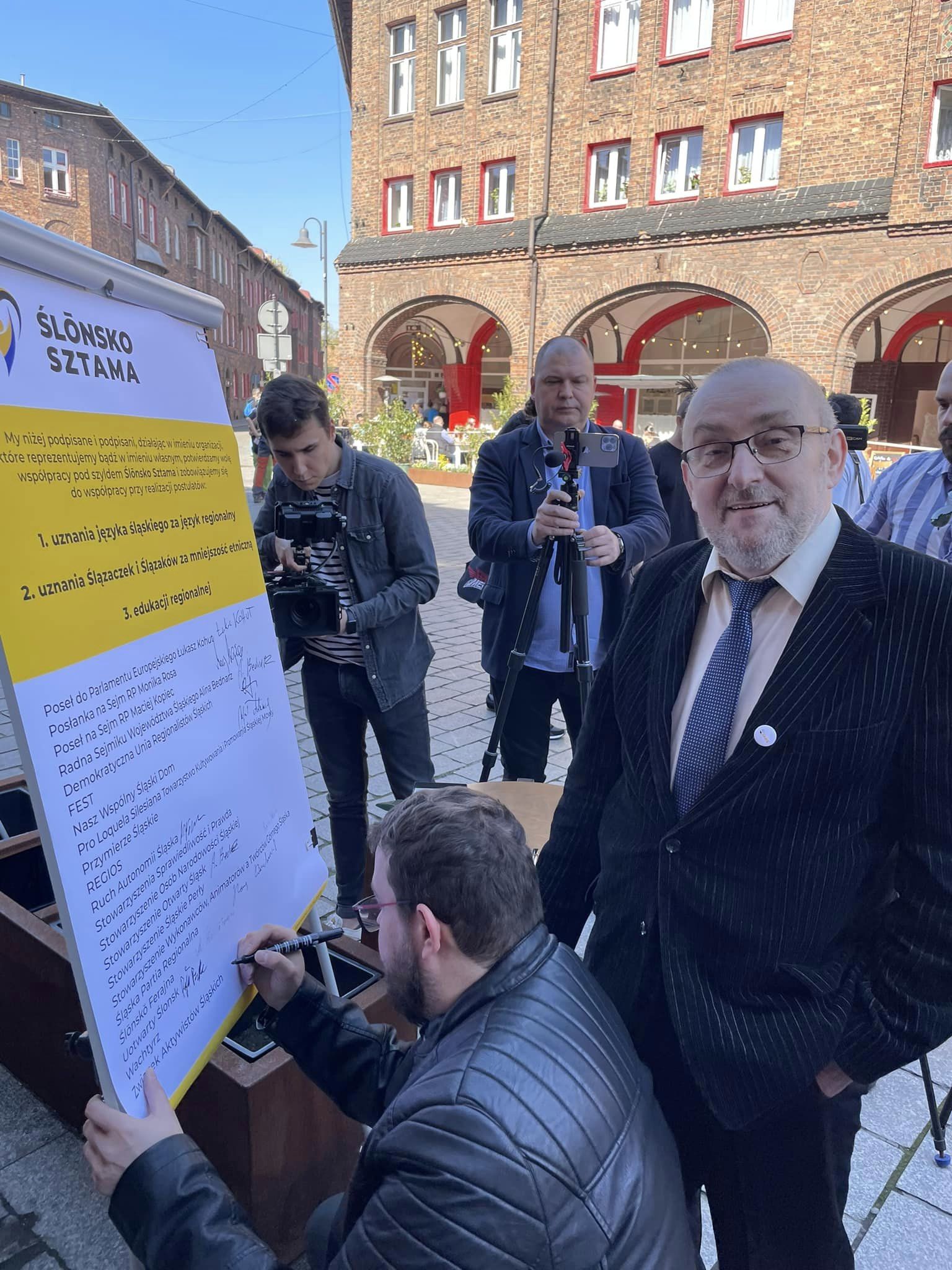 Dzisiej 22 kwiytnia byli my we Nikiszowcu kaj #ŚlōnskoSztama pospōł ôświadczyła, co bydzie dbać ô ślōnsko gŏdka, idyntyfikacyjõ jak tyż kulturã. Dziynkujymy wszyjskim za ta spisowa akcyjŏ, szafnylimy to!