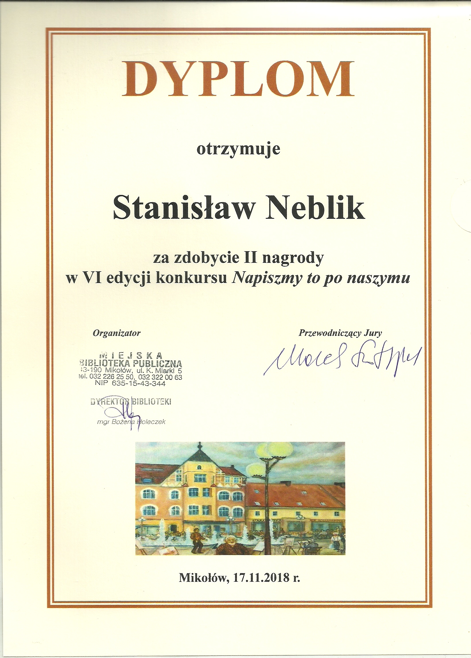 W Mikołowie wczoraj 17.11.2018r bōł już VI Finał Kōnkursu „Napiszmy to po naszymu”. Kōnkurs szykuje Bibliotyka we Mikołowie. Wymyślōł tyn kōnkurs Jōzef Żur. Kożdy rok je inkszy tymat kōnkursu. Latoś trza było napisac 1-3 wiersze po ślōnsku, abo po polsku ô ślōnskij tymatyce.